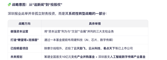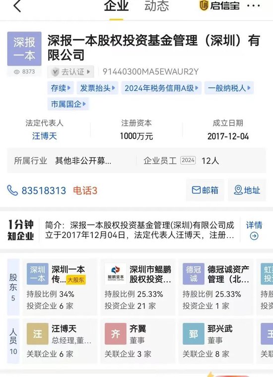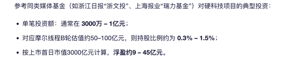 公告信息显示,深圳报业集团,通过旗下投资平台“深报一本股权投资基金”作为早期投资方,参与了国产GPU企业摩尔线程的投资,并在其2025年12月科创板上市后获得显著回报。具体多少到目前没有公开信息,但根据目前媒体类科创的投资每笔在 3000万到 1 亿,按照最低的 3000 万投资,深圳报业是一本基金的大股东,占 34%股份。