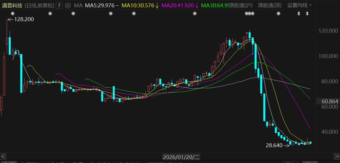 或许是投资者早已预料到了这样的结果,从而提前“用脚投票”,滴普科技的股价在3月初出现断崖式暴跌,累计最高跌幅高达76%。